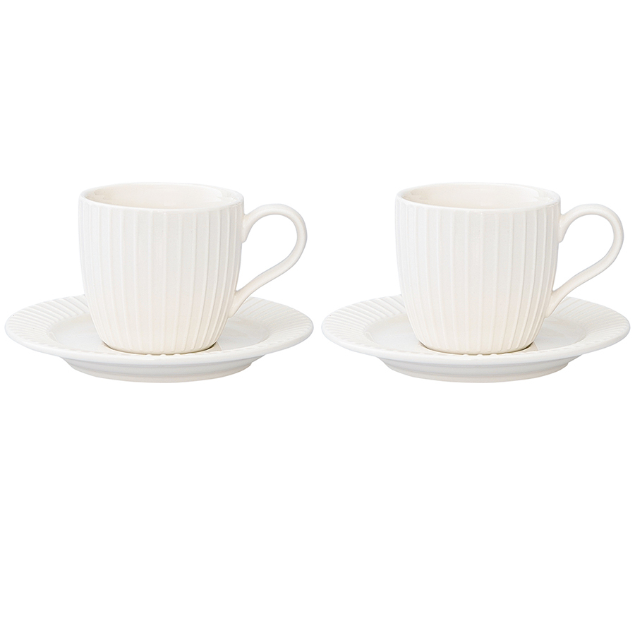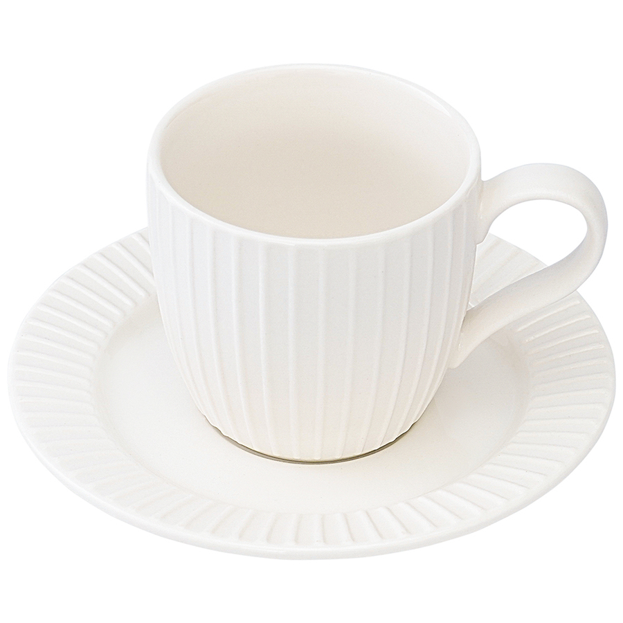 Материал: фарфор. Объем: 125 мл. Размеры: чашка – 8,8х6,4х5,7 см; блюдце – 12,8х12,8х1,6 см. Количество в наборе: 2 шт. Цвет: белый.