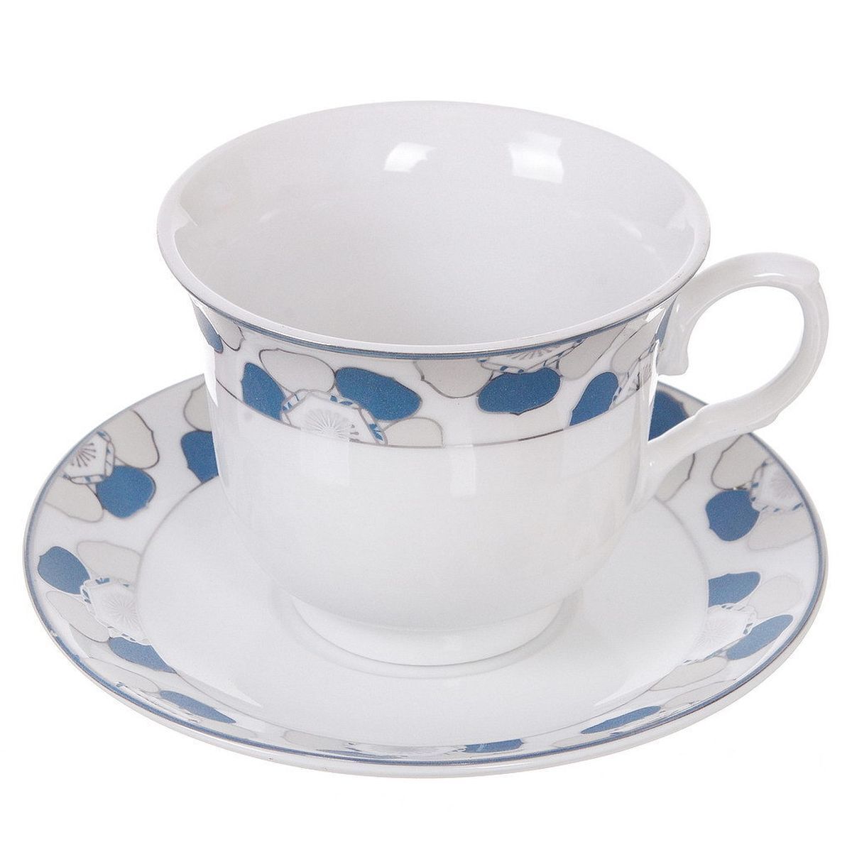 В комплекте: 12 предметов — 6 чашек и 6 блюдец, подставка.