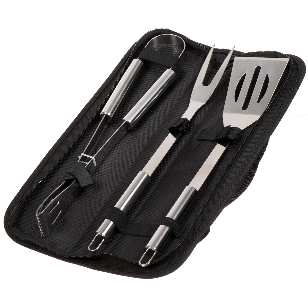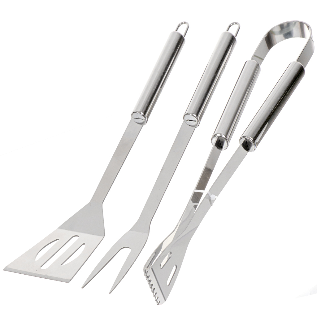 Набор для барбекю из 3х предметов – минимален и достаточен! Набор включает в себя щипцы для барбекю, вилку и лопатку.