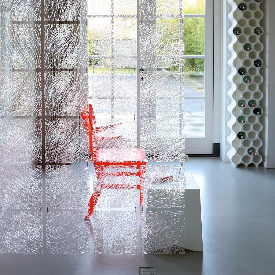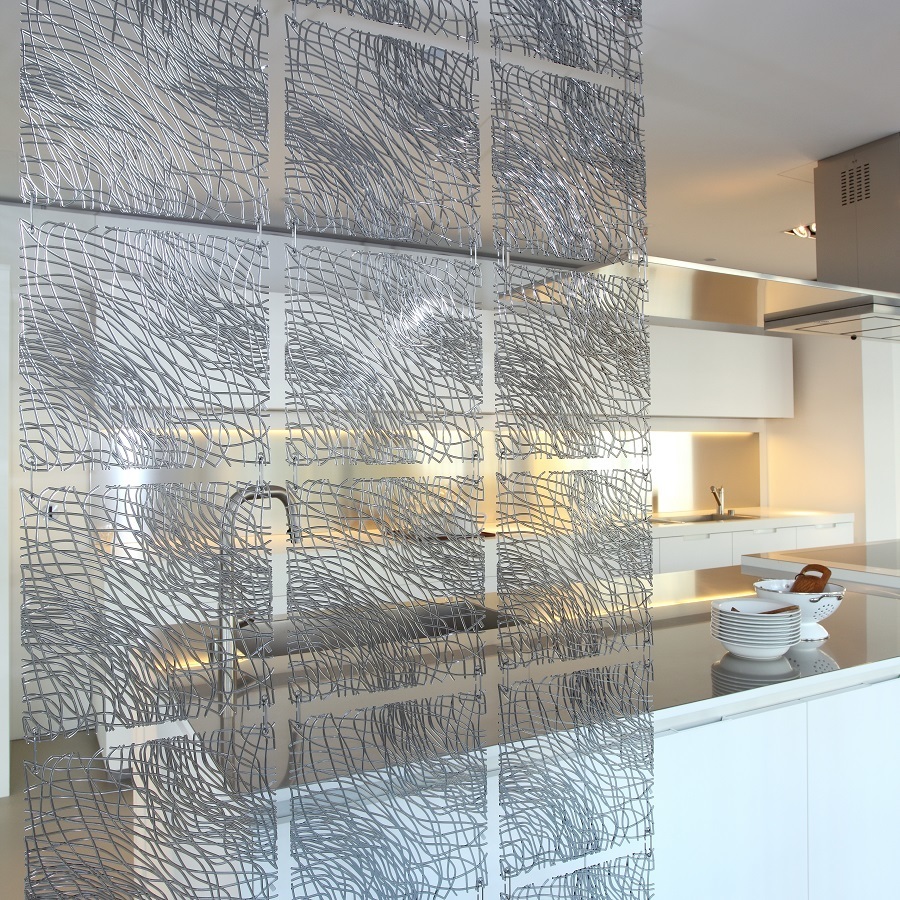 Штора-разделитель для комнаты SILK — стильный и функциональный элемент декора, который расширяет границы возможностей в дизайне интерьеров. Изделие может быть ярким и эффектным акцентом в комнате или нейтральным дополнением к другим элементам для общей гармонии и создания атмосферы уюта. Зонирование — это актуальный тренд в дизайне интерьеров, который помогает грамотно разделять большие пространства. Шторой можно разграничить рабочую зону, отделить ее от кухни или от спальни. Особенности: - 4 пластины в наборе - из съемных частей можно собрать разделитель любого размера и формы - крючки-крепления в комплекте - не содержит меламин Производство: Германия