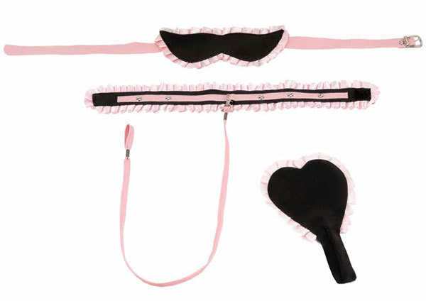 Если вас посетило желание пошалить, не стоит ему противиться. Предложите любимому сыграть с вами в ролевую игру. Какую? Да совершенно любую! Всё, что вам потребуется, это маска с рюшами, ошейник с поводком и шлёпалка-сердечко. Решайте сами, кто, кого и как наказывает и ласкает! Набор для игр. В комплекте: маска отделанная нежной рюшей, на застежке сзади, ошейник отделанный рюшей, на длинном поводке, шлепалка в виде сердечка. Предметов в комплекте: 3-маска, ошейник, шлепалка.