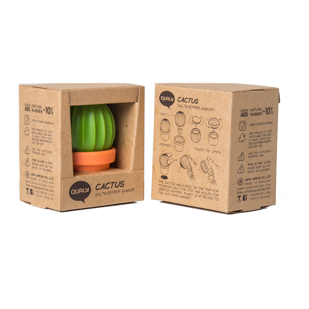 Необычный набор удобен для хранения различных специй. Пряности плотно закрываются крышкой, и долгое время не теряют свой аромат. Оригинальный дизайн в виде кактуса радует глаз, поэтому набор будет уместен на полке или столе. Емкости выполнены из пластика, этот материал предотвращает попадание влаги в душистые смеси.