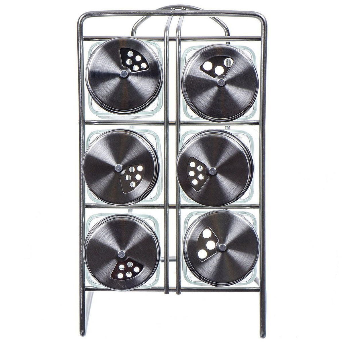Набор для специй состоит из 6 баночек для специй и металлической подставки. Баночки изготовлены из стекла и оснащены плотно закручивающимися крышками.