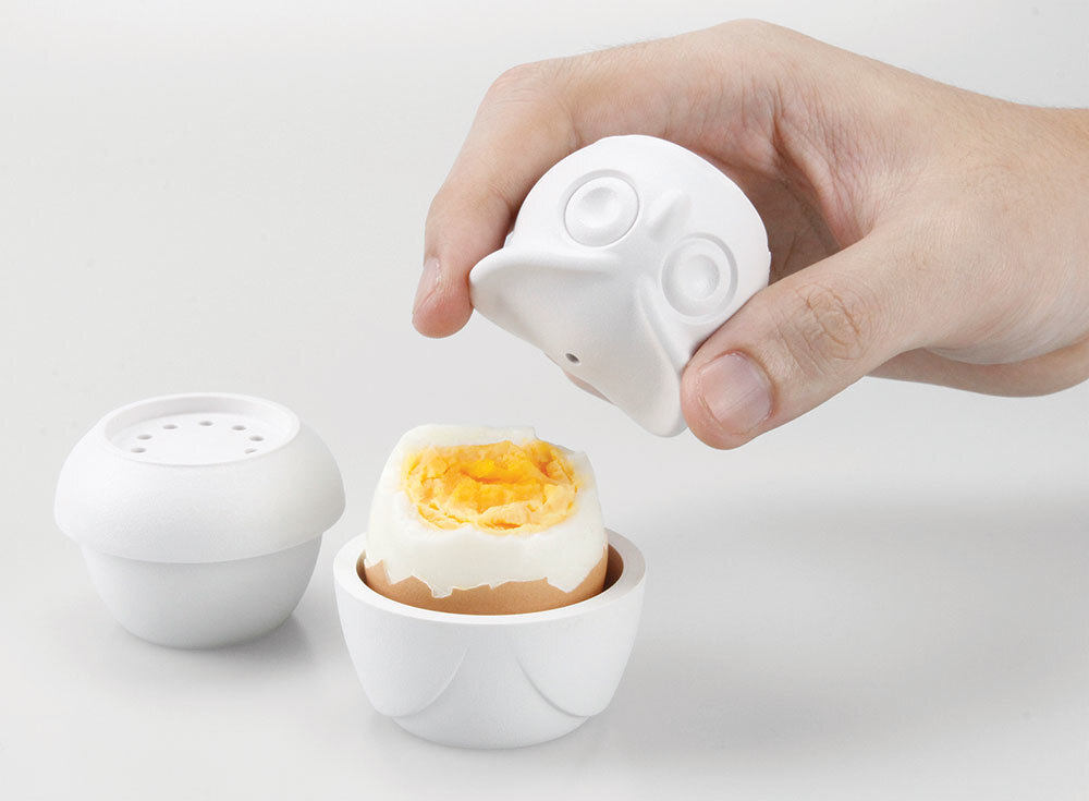 Веселый набор для завтрака станет отличным подарком для тех, кто любит забавные штучки. В комплект входит подставка для яйца, 2 контейнера для специй и 2 крышечки. Все емкости складываются друг в друга и превращаются в забавного совенка. Набор можно брать с собой в дорогу, если хочется взять с собой частичку дома.