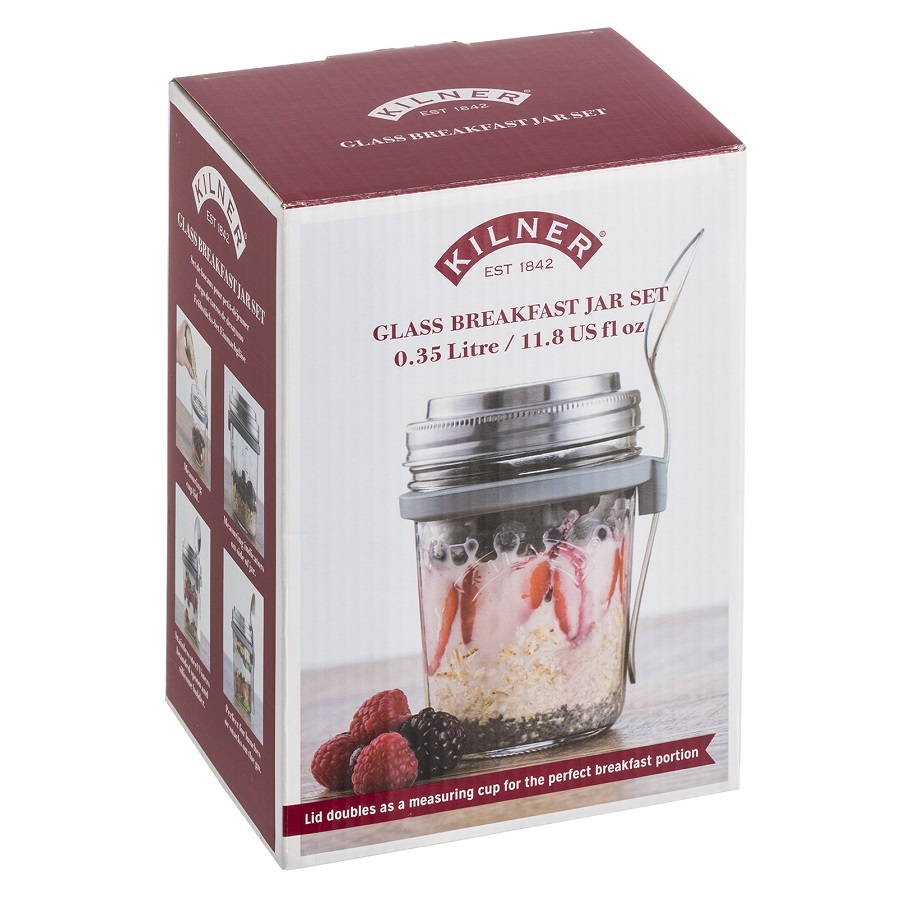 Набор для завтрака от Kilner – отличный вариант для всех, кто следит за своим питанием! Банку с герметичной крышкой и десертной ложкой можно взять с собой на работу или в дорогу. Емкость подходит для хранения готовых продуктов: овсяных хлопьев, йогуртов, сухих завтраков с сухофруктами, орехами, семечками и ягодами.