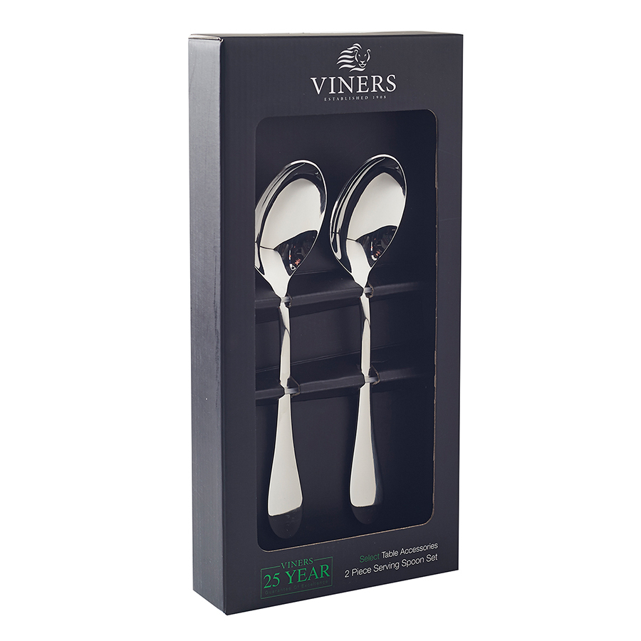 Набор из 2 сервировочных ложек в подарочной упаковке. Можно мыть в посудомоечной машине. Набор станет отличным подарком на памятную дату. Select — коллекция столовых приборов из нержавеющей стали 18.0, которая производится по самым высоким стандартам качества. Приборы устойчивы к коррозии, ржавчине и окислению. Бренд Viners даёт гарантию на коллекцию 25 лет.