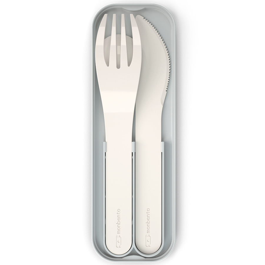 Компактные приборы поставляются в специальном футляре. Набор удобно хранить под крышкой ланч-бокса Monbento. Изделия выполнены из PLA - 100% биоразлагаемого пластика, произведенного из растений. Материал отличается прочностью и устойчивостью к износу. В составе отсутствуют вредные соединения, такие как бисфенол-А.