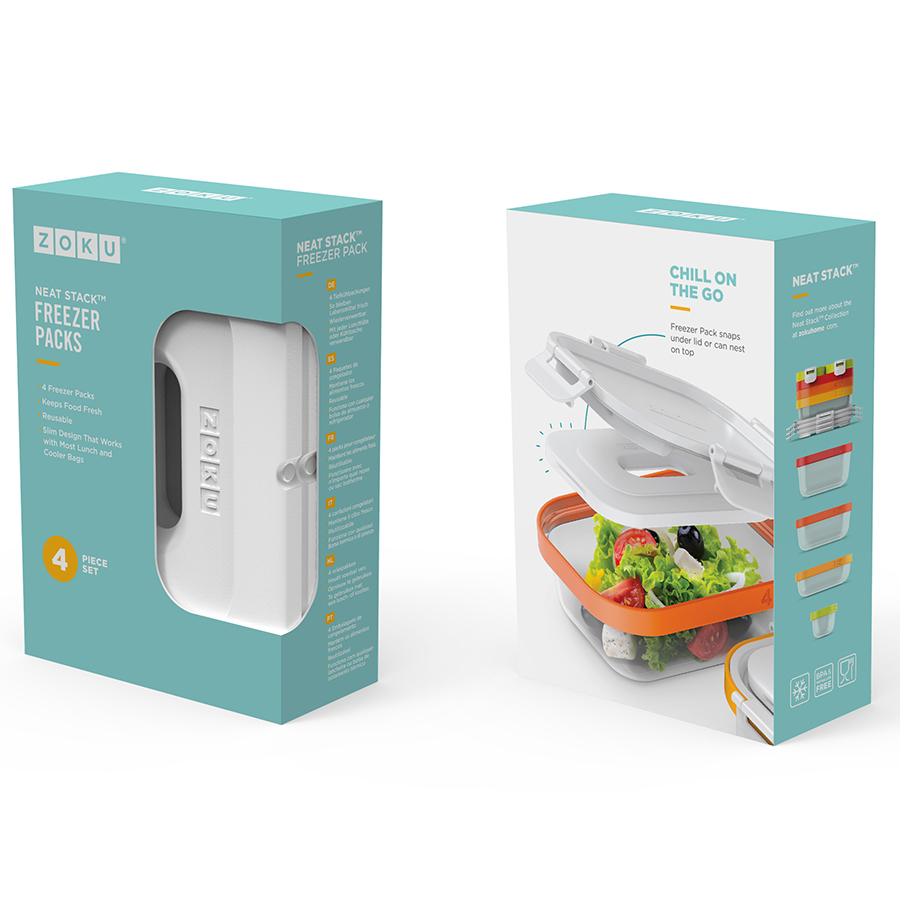 Охлаждающие блоки будут поддерживать оптимальную температуру содержимого контейнера в течение длительного времени. С ними брать еду в поездки или на пикник станет удобно и безопасно. Блоки могут размещаться внутри и снаружи контейнера. Перед использованием положите блок в морозилку. В комплект входит 4 многоразовых охлаждающих блока. Универсальные аксессуары подходят для контейнеров Neat Stack™ объемом 700 мл, 1 л и 1,5 л.