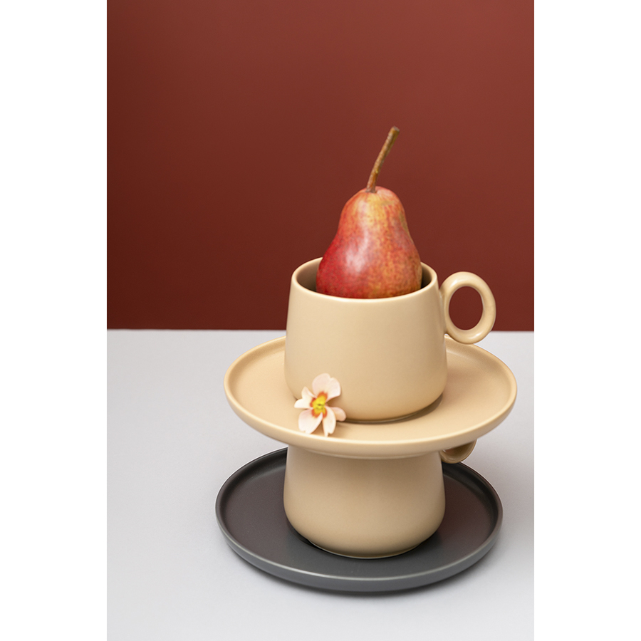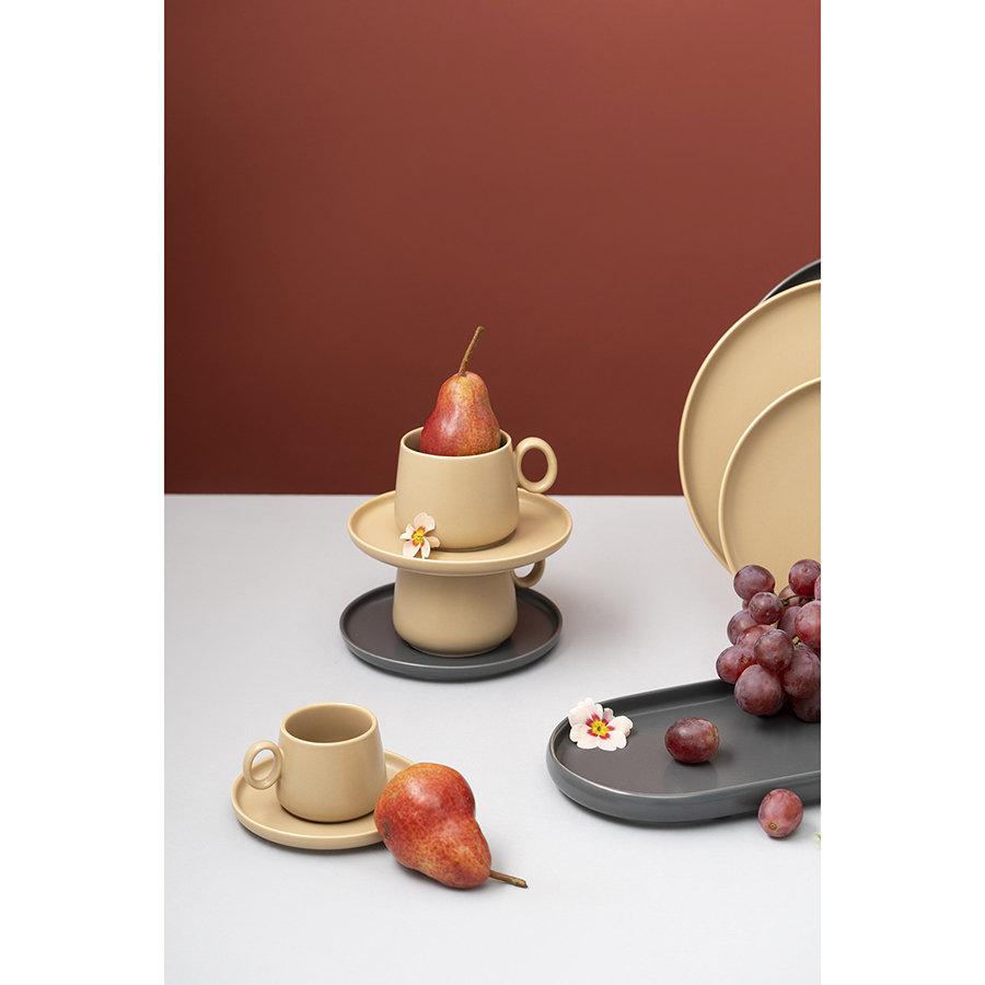 Набор из двух фарфоровых чайных пар нежного бежевого цвета подойдет как для праздничной сервировки, так и для ежедневного чаепития. Сдержанный скандинавский дизайн чашек и блюдец станет украшением вашей кухни, а необычная форма будет радовать каждый день. Гладкая фарфоровая поверхность с приятным, чуть приглушенным глянцем благородно выглядит и вместе с тем очень практична — не царапается и легко отмывается от загрязнений. Чайные пары можно дополнить другими предметами из серии Essential — например, тарелками, блюдами и салатниками.