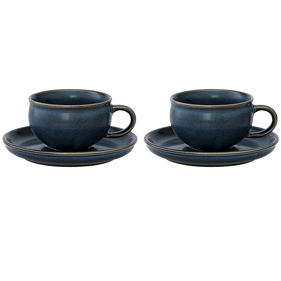 Набор чайных пар из серии Cosmic Kitchen от бренда Liberty Jones выполнен из высококачественного фарфора. Внешние и внутренние поверхности емкостей покрыты реактивной глазурью, которая создает интересный эффект состаривания. Дизайн особенно понравится поклонникам таких уютных стилевых направлений, как кантри, сканди, эко, эклектика. Фарфоровые чашки и блюдца легко моются, не впитывают запахи и загрязнения, долго сохраняют привлекательный вид. Экологичный материал безопасен для здоровья.