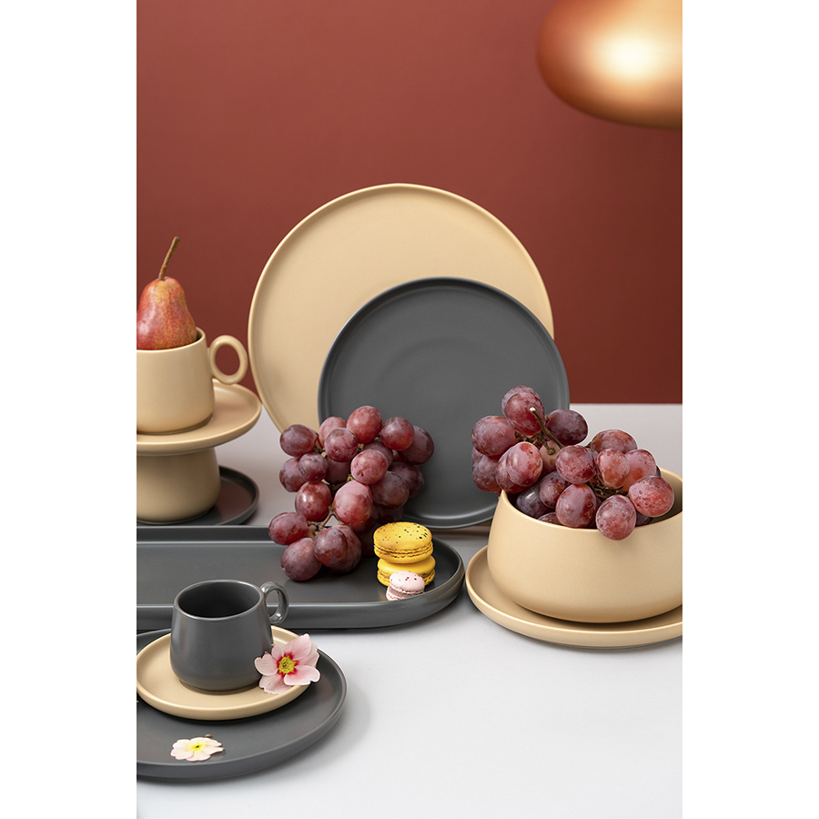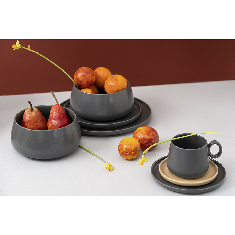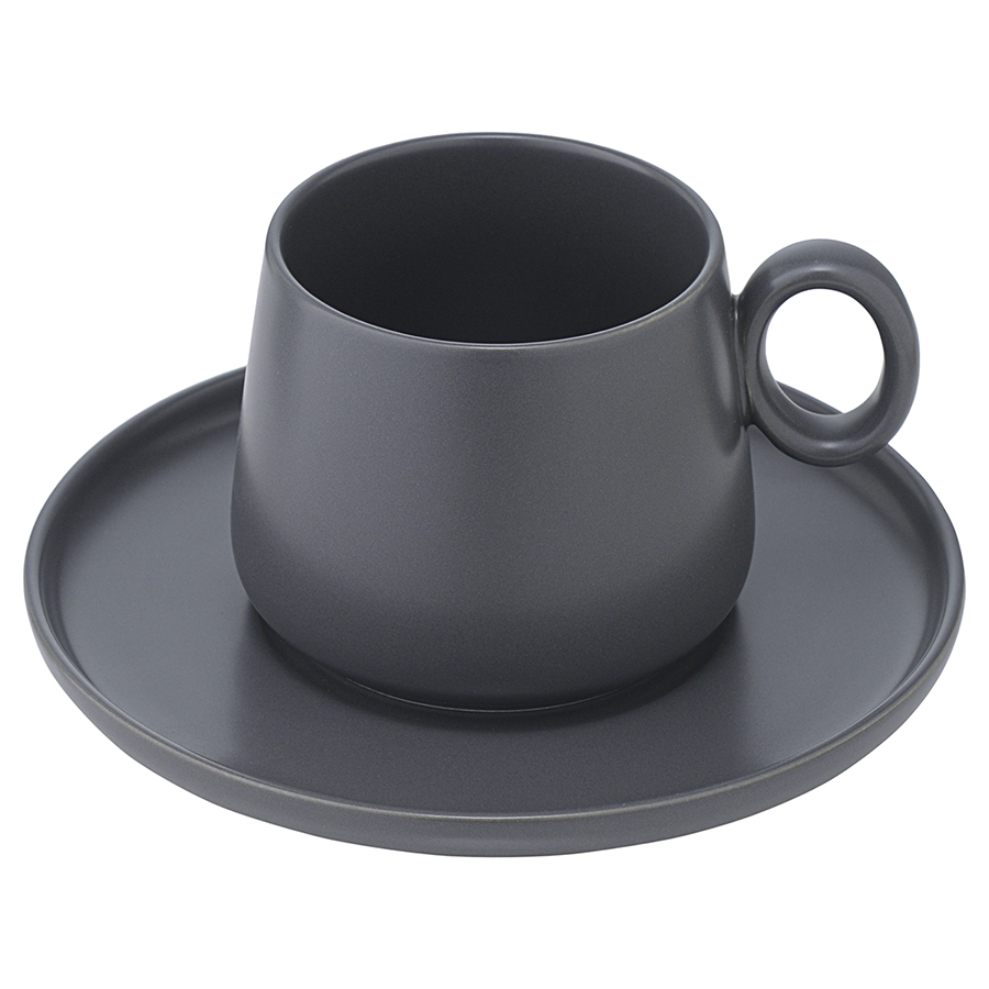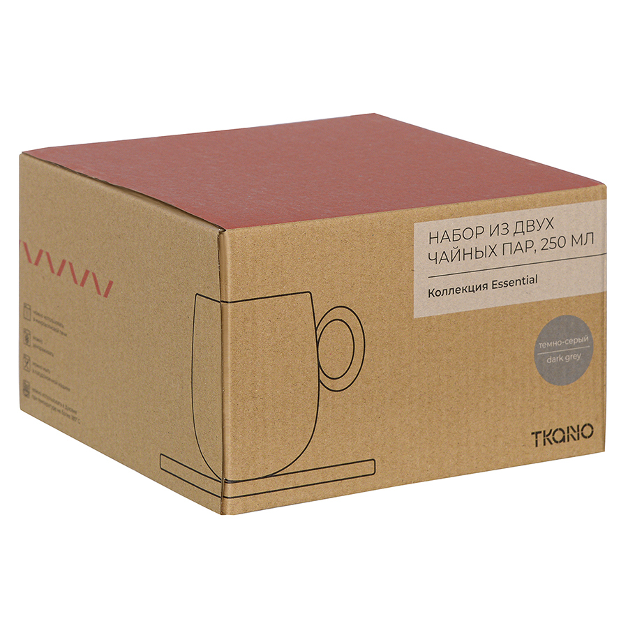 Набор из двух фарфоровых чайных пар глубокого серого цвета подойдет как для праздничной сервировки, так и для ежедневного чаепития. Сдержанный скандинавский дизайн чашек и блюдец станет украшением вашей кухни, а необычная форма будет радовать каждый день. Гладкая фарфоровая поверхность с приятным, чуть приглушенным глянцем благородно выглядит и вместе с тем очень практична — не царапается и легко отмывается от загрязнений. Чайные пары можно дополнить другими предметами из серии Essential — например, тарелками, блюдами и салатниками.
