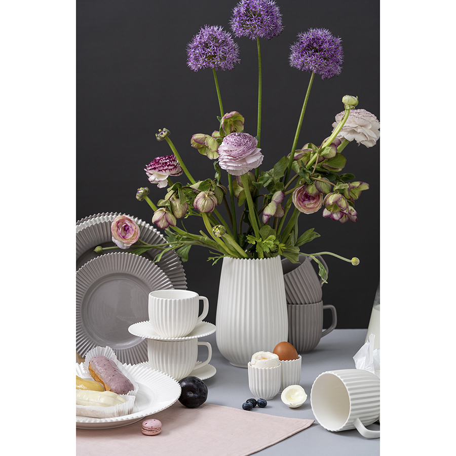 Набор из двух фарфоровых кружек красивого темно-серого цвета — для тех, кто любит большие порции и долгие чаепития. Несмотря на свой размер, кружки очень легкие и удобно ложатся в руку, а рифленая поверхность добавляет дизайну утонченность и изящество. А еще они идеально сочетаются с другой посудой из серии Edge — тарелками, салатниками, сахарницами, вазами и другими предметами.
