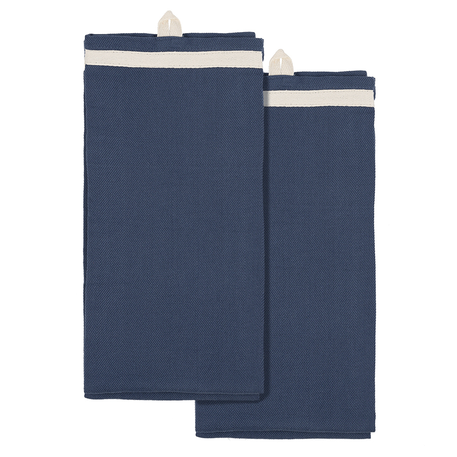 Набор кухонных полотенец темно-синего цвета из коллекции Essential выполнен из 100% хлопка саржевого плетения. Они подойдут практически для любого интерьера благодаря лаконичному канту из нашитой контрастной хлопковой киперной ленты. Такая отделка делает край особенно прочным и устойчивым к деформациям и разрывам. Благодаря саржевому переплетению ткани, полотенца обладают повышенной прочностью, не линяют, хорошо впитывают и испаряют влагу, почти не мнутся, на них не образуются катышки. С изнаночной стороны есть петелька для подвешивания.