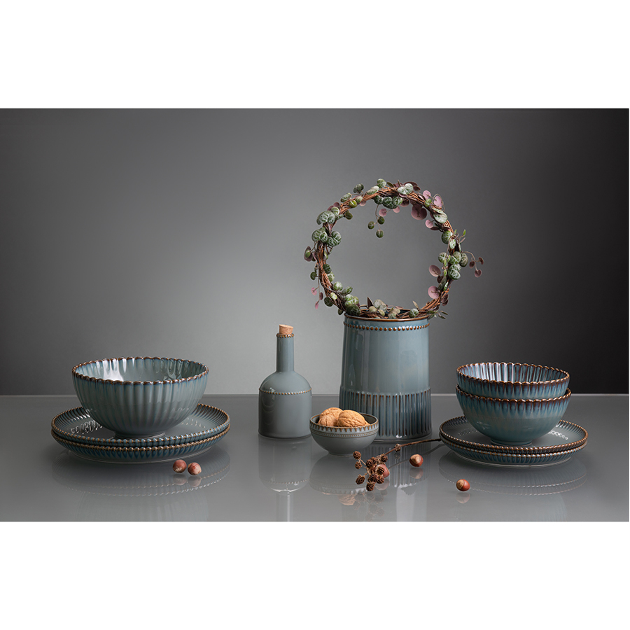 Отличительной особенностью линейки является покрытие из реактивной глазури, которое создает на поверхности посуды уникальные узоры. Во время обжига фарфора возникает химическая реакция, обычно плавление или окисление, в результате которой и получается нужный рисунок. Благодаря такой обработке найти два идентичных изделия практически невозможно. Именно за счет своей индивидуальности и неповторимости узора столовая посуда и аксессуары для сервировки с реактивной глазурью стали трендом в мире дизайна и декора.