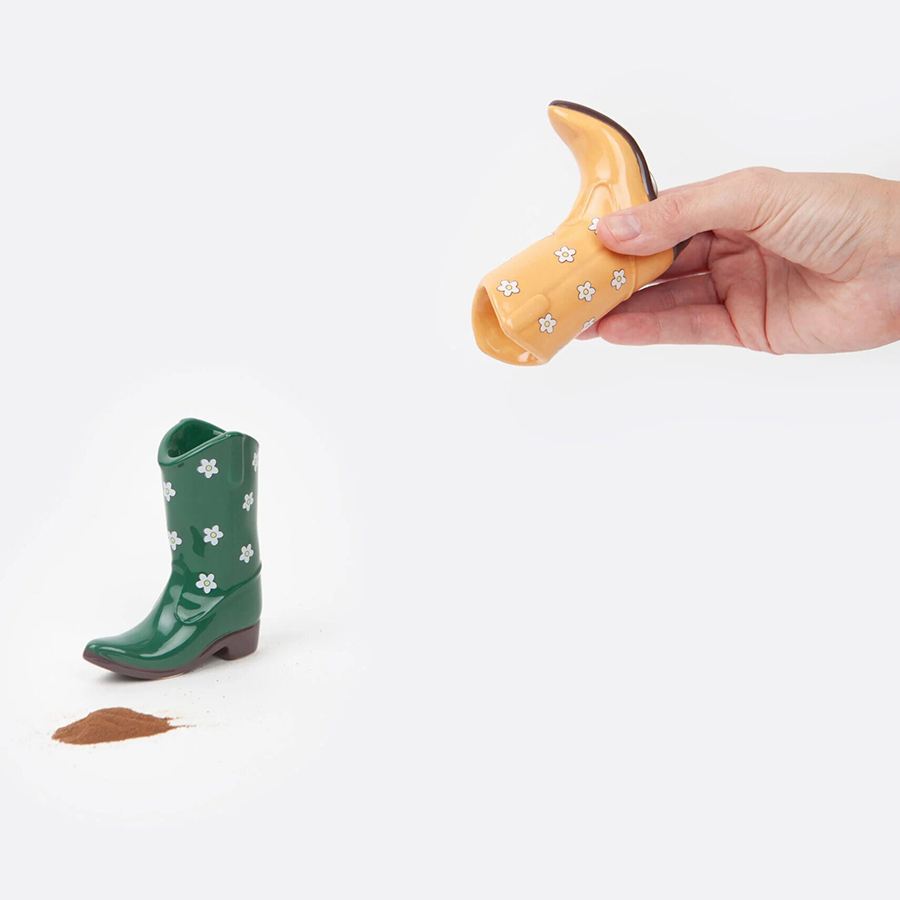 - Яркий дизайн в виде ковбойских сапог радует глаз и акцентирует на себе внимание.