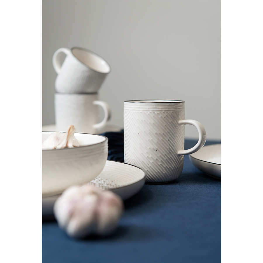 Кружки белого цвета из высококачественного фарфора Contour станут неотъемлемой частью уютного чаепития. Рельефная поверхность и декоративная окантовка придают посуде оригинальный вид. Материал изготовления неприхотлив в уходе, не впитывает загрязнения, является экологичным и безопасным для здоровья. Набор идеально подходит как для повседневной, так и для праздничной сервировки стола.