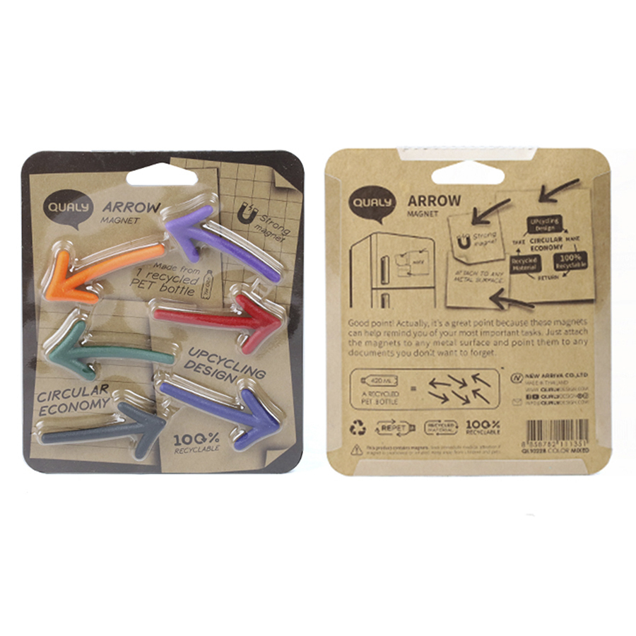 Набор из шести магнитов Arrow – прекрасный способ не забыть о важных задачах или начать новый день с мотивирующих мыслей и приятных пожеланий. Вы можете крепить с их помощью рецепты, стикеры с напоминаниями, документы и многое другое. Главное – найти подходящую металлическую поверхность. Изделия выполнены из переработанного пластика. Материал безвредный для окружающей среды, практичный и износостойкий.