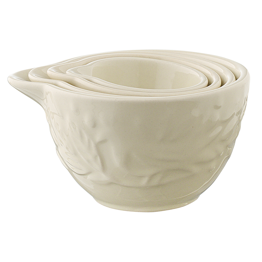 Материал: каменная керамика. Размеры: 7,6х6,7х4,1 см; 9,2х8х5 см; 10,8х9,6х5,8 см; 12,6х11,1х6,8 см. Объемы: 50 мл, 100 мл, 170 мл, 290 мл. Цвет: кремовый. Количество предметов в наборе: 4 шт.