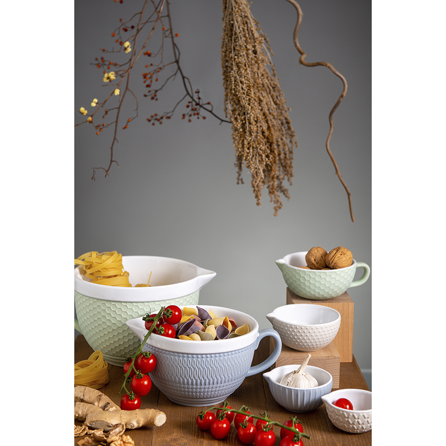 Чаши мерные Marshmallow представляют собой изделия из каменной керамики – экологичного и устойчивого к износу материала. Поверхность посуды украшает рельефный узор, который смягчает строгие формы и придает дизайну нотки легкости и элегантности. Емкости особенно пригодятся во время приготовления различных блюд для точного определения объема жидких продуктов.
