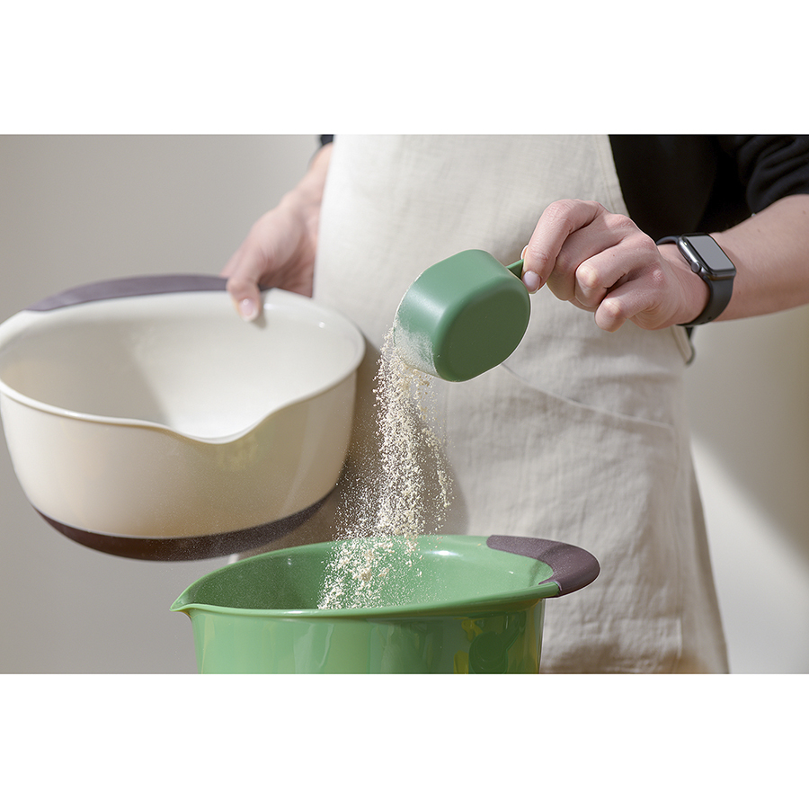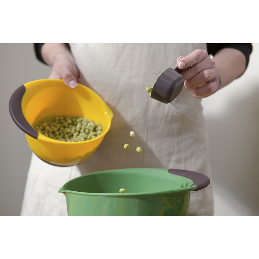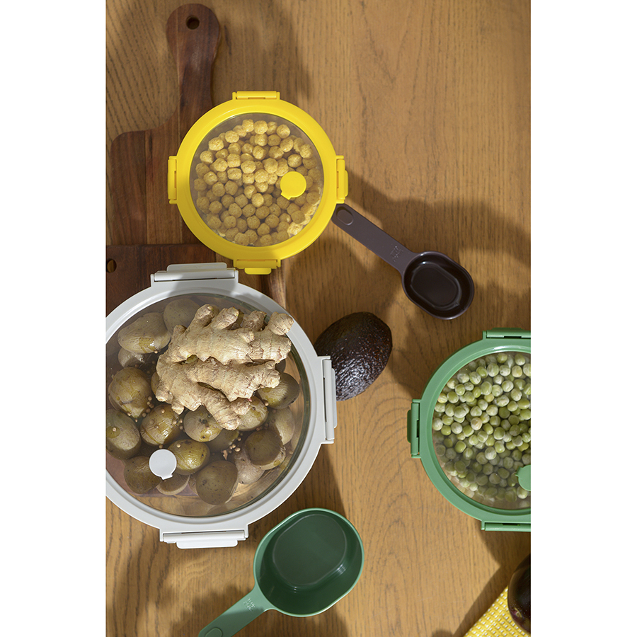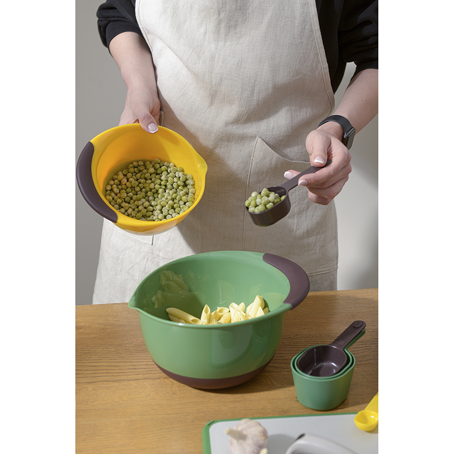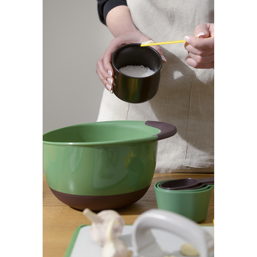 Набор из 9 предметов Gro включает в себя: мерный стакан, воронку, скребок и 6 ложек разных объемов. Такой комплект помогает четко соблюдать пропорции добавляемых ингредиентов, что существенно облегчает процесс приготовления различных блюд. Мерный кувшин может использоваться как для жидких, так и для сыпучих продуктов. Воронка позволяет аккуратно переливать жидкость, не испачкав используемую под готовку поверхность. Все элементы из комплекта удобно складываются для компактного хранения.
