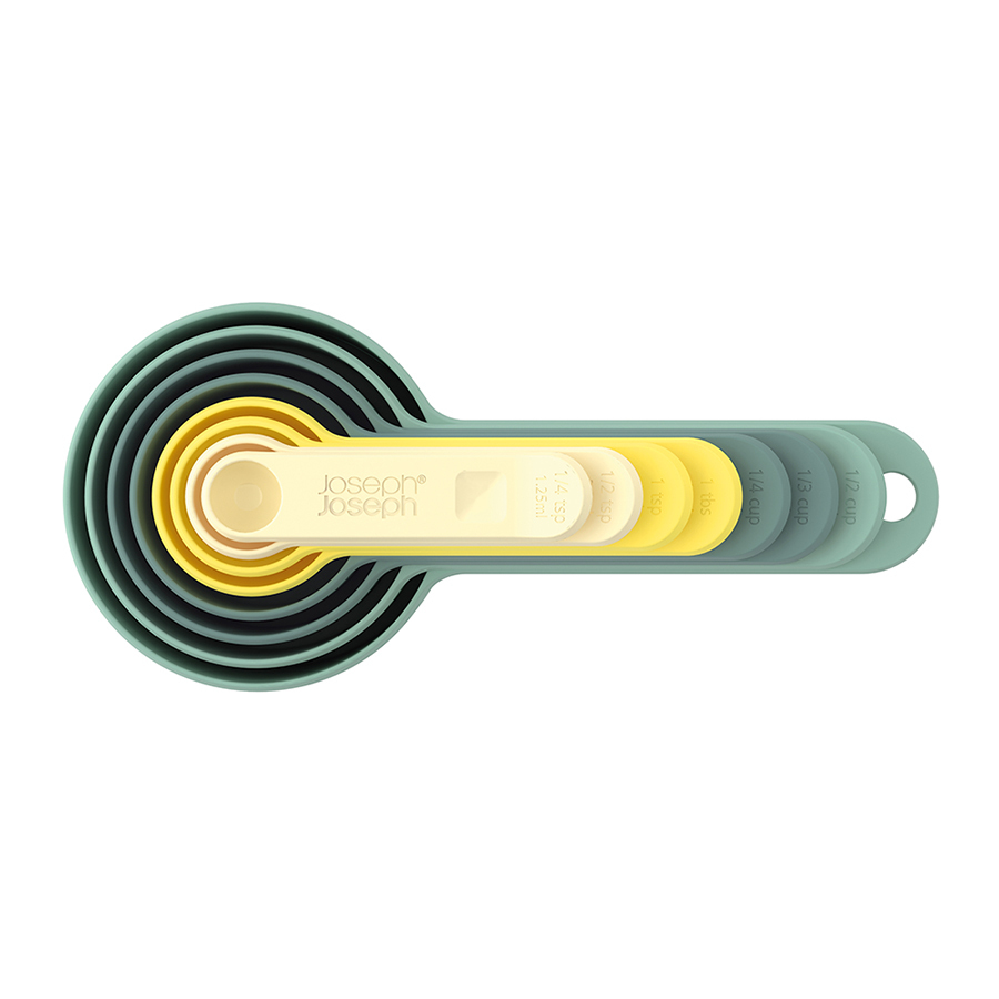 Бестселлер от Joseph Joseph в новой цветовой гамме. Комплект мерных емкостей из 8 предметов занимает минимум места. После применения каждая емкость компактно складывается одна в другую. Объем измерительных ёмкостей: - 1/4 чайной ложки - 1/2 чайной ложки - 1 чайная ложка - 1 столовая ложка - 1/4 стакана - 1/3 стакана - 1/2 стакана - 1 стакан