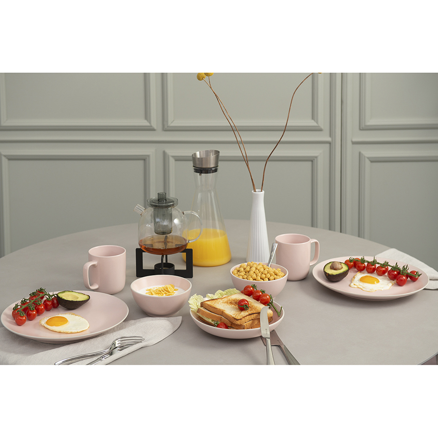 В коллекции Simplicity дизайнер использовал модное сочетание двух фактур – полуматовой глазури и шершавой текстуры белой глины, создав идеальный тандем современности и традиций. Нежные оттенки голубого и розового придают посуде неповторимый шарм. Простые, элегантные формы и пастельные тона делают ее идеальным выбором для повседневной и праздничной сервировки.