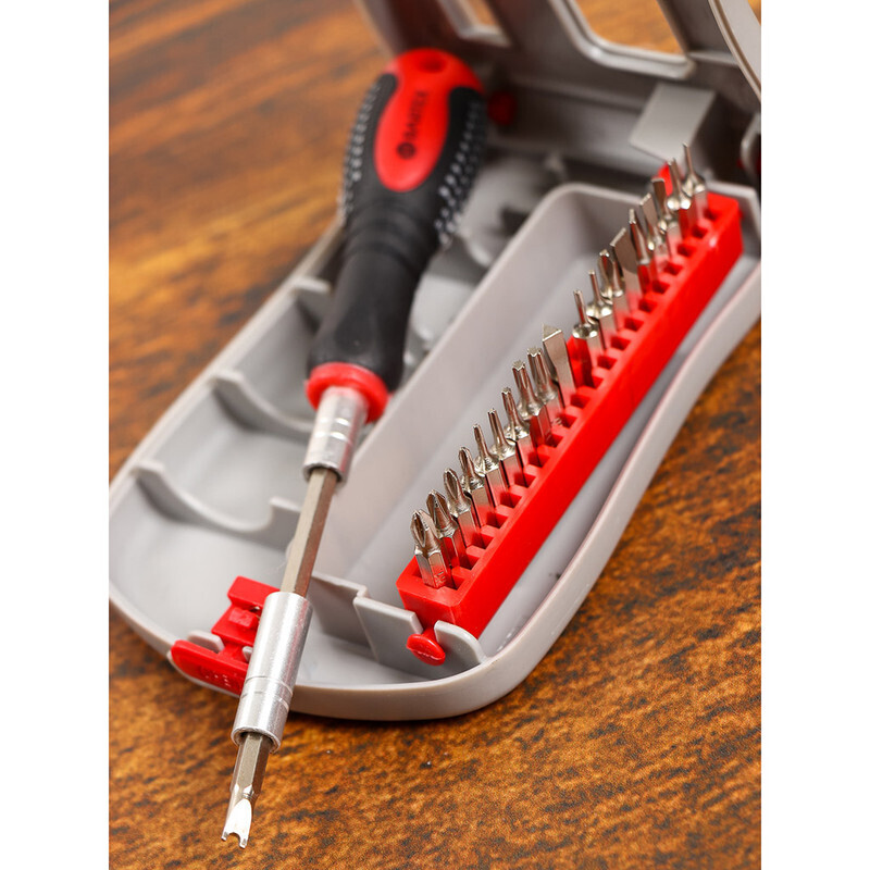 Отвертка Bartex предназначена для выполнения прецизионных работ по ремонту и обслуживанию мобильных телефонов, часов, пейджеров, ноутбуков и другой электронной техники. Насадки и отвертка удобно укомплектованы в пластиковый футляр, который позволит изделиям всегда находиться под руками ремонтника.