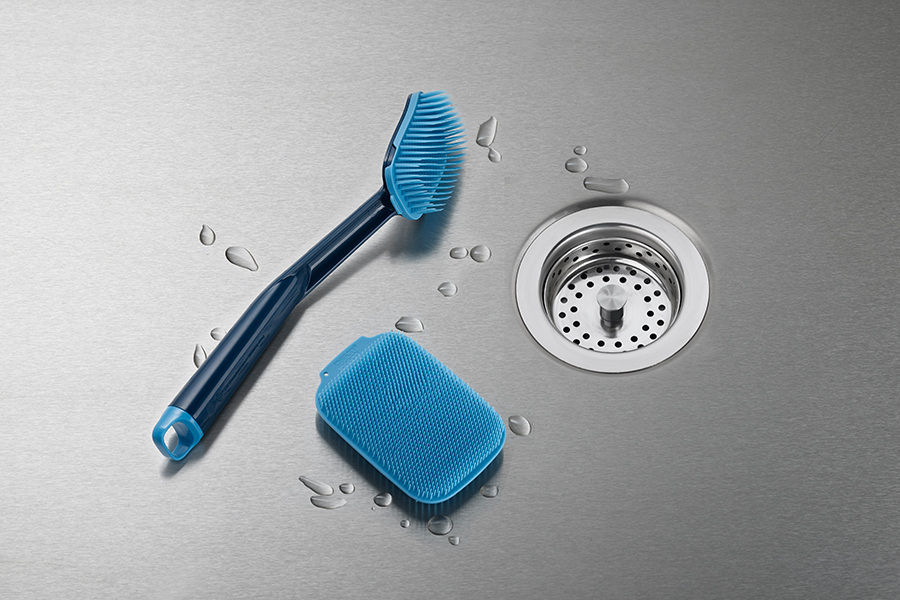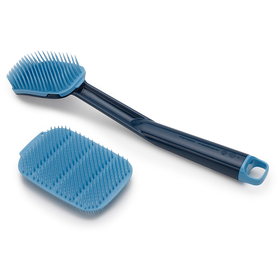 В комплект входят щетка с ручкой и жесткой насадкой и малая мягкая щетка. Полимерная щетина изделий не дает скапливаться грязи, не впитывает воду и быстро сохнет. Щетки эффективно очищают любые загрязнения даже с антипригарной посуды.