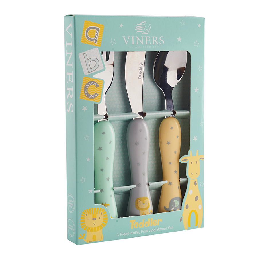 Набор из 3 столовых приборов: нож, вилка и ложка. Можно мыть в посудомоечной машине. Набор упакован в красивую коробку и станет отличным подарком малышу. Коллекция столовых приборов из нержавеющей стали 18.0, которая производится по самым высоким стандартам качества. Приборы устойчивы к коррозии, ржавчине и окислению. Бренд Viners даёт гарантию на коллекцию 25 лет.