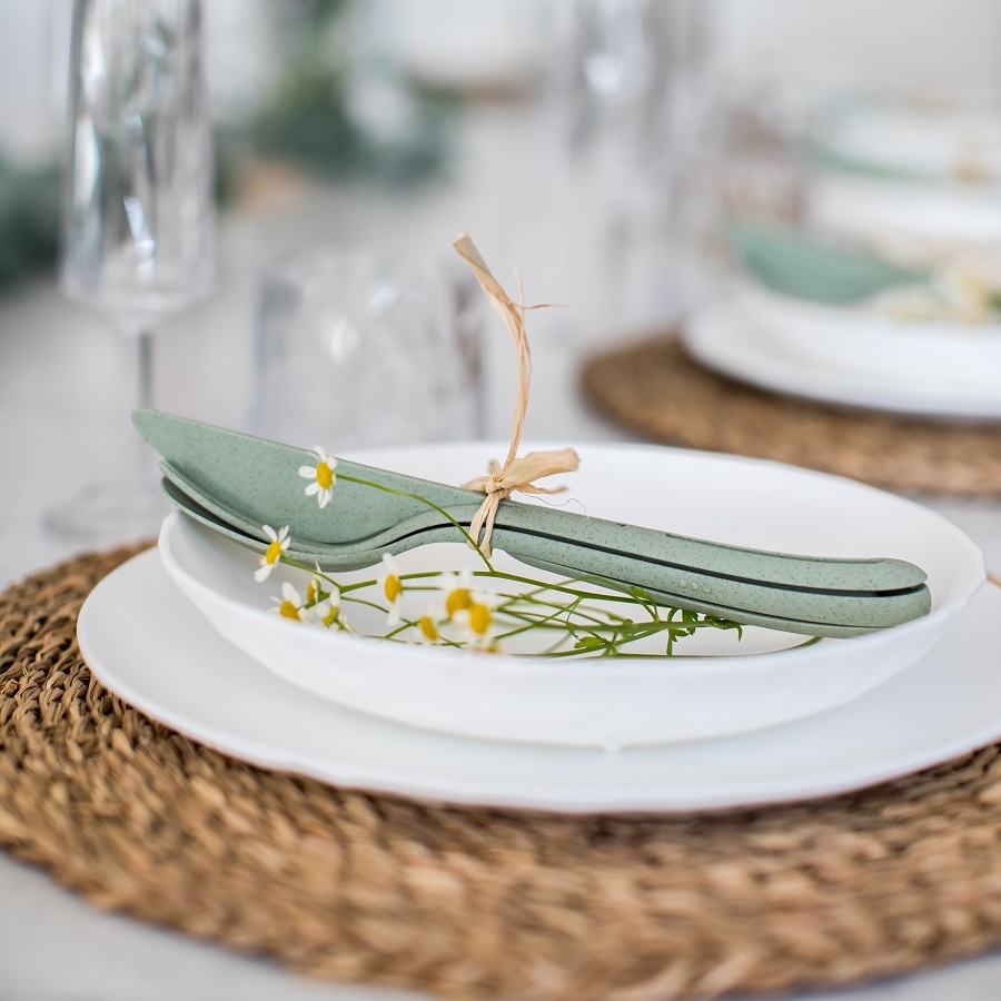 Набор из 3 столовых приборов Klikk – это уникальные изделия, изготовленные из органического материала на основе целлюлозы – экологически чистого, нетоксичного, не содержащего формальдегида и бисфенола А. Преимущество набора в его компактности: все три прибора складываются в один, не занимая много места в дорожной сумке. Идеальный вариант для путешествий и пикников!