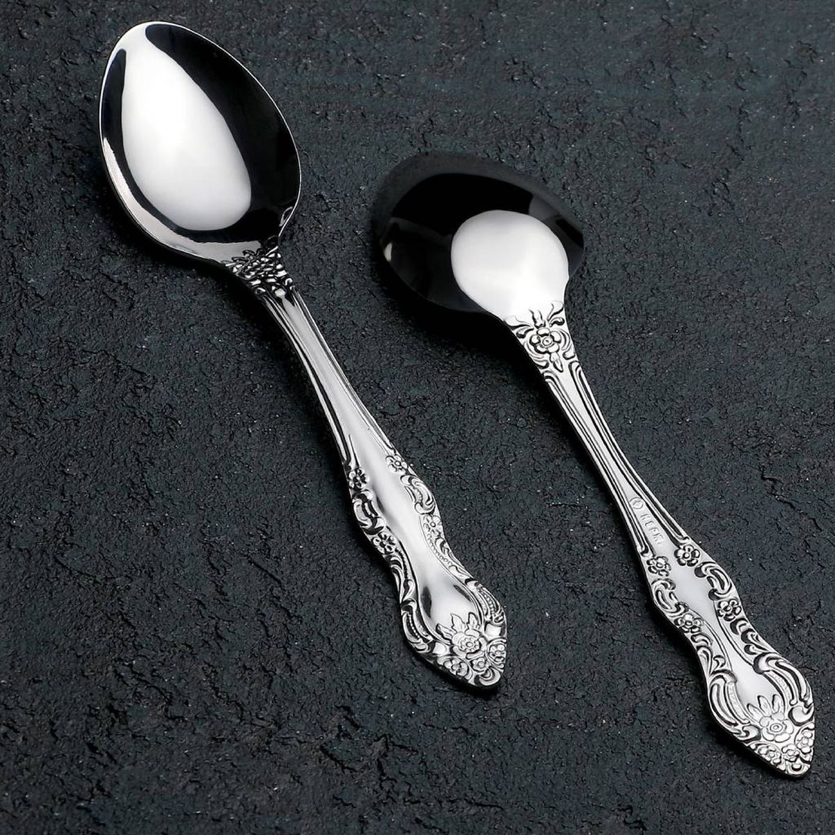 Столовые приборы изготовлены на Павловском заводе им. Кирова, основанном в 1890 году. Продукция соответствует ГОСТу и изготавливается из экологически чистой нержавеющей стали, что подтверждается санитарно-гигиеническим сертификатом.