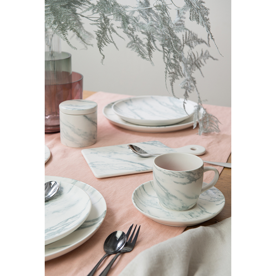 Тарелки для сервировки из фарфора серии Marble – удачное сочетание стильного дизайна и превосходного качества. Коллекцию отличает ненавязчивый мраморный узор, который придает посуде элегантность и нотки благородства. Благодаря устойчивому к износу материалу изделия сохраняют привлекательный вид долгие годы. Тарелки хорошо очищаются от загрязнений обычной мыльной водой.