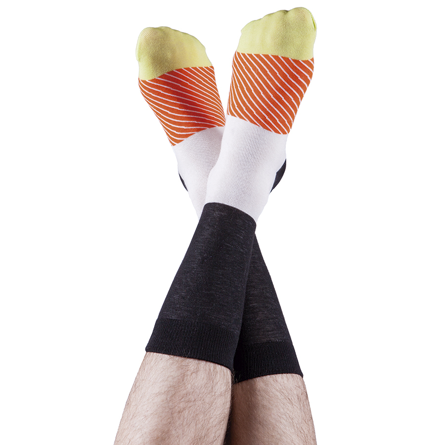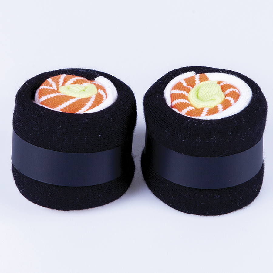 Стильные носки, в свернутом виде напоминающие ролл с лососем, - милый аксессуар в вашем гардеробе.