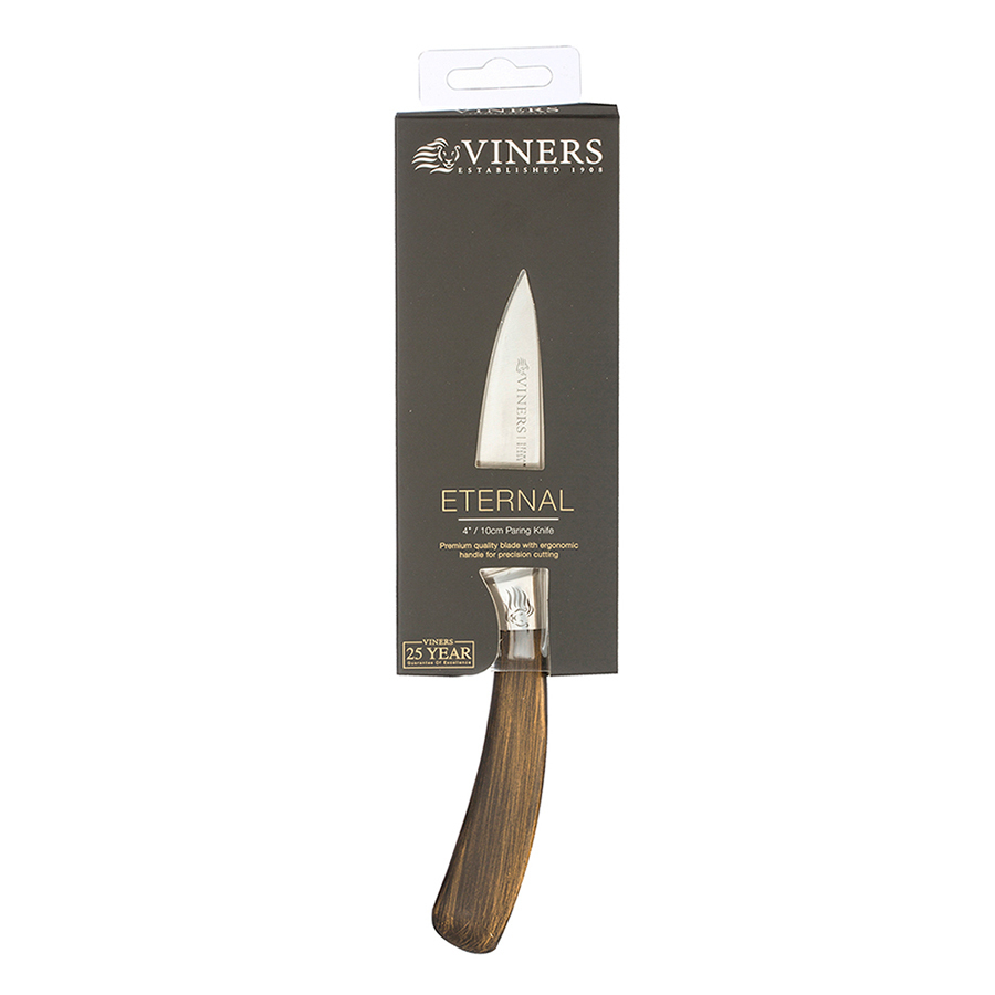 Нож с лезвием 10 см из углеродистой стали идеально подходит для очистки, нарезки и создания декоративных элементов из фруктов и овощей для изысканной сервировки. Его также можно использовать для мелкой обработки мяса перед жаркой и запеканием. Кухонные ножи Eternal не рекомендуется мыть в посудомоечной машине, т.к. это может негативно сказаться на заточке лезвий. Eternal — коллекция ножей из немецкой стали, которая производится по самым высоким стандартам качества. Лезвия выполнены из углеродистой стали. Благодаря этому они обладают повышенной прочностью и годами сохраняют остроту. Ножи оснащены удобными рукоятками из нержавеющей стали, стилизованными под натуральное дерево. С помощью ножей Viners любой повар может добиться безупречных кулинарных результатов. Бренд Viners даёт гарантию на коллекцию 25 лет.