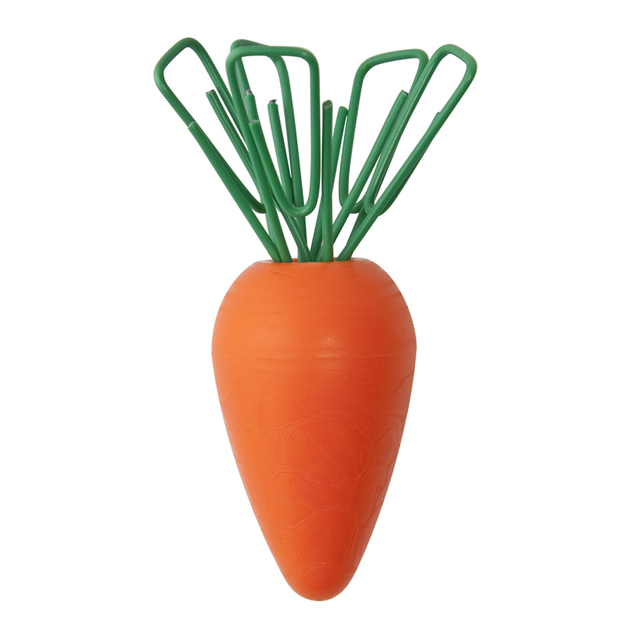 Зайчик 2 в 1! Это и острые ножницы - ушки и хорошенький диспенсер для скрепок в виде магнитной морковки. После того как закончатся, входящие в комплект скрепки, Вы можете использовать любые другие, желательно зеленого цвета:)