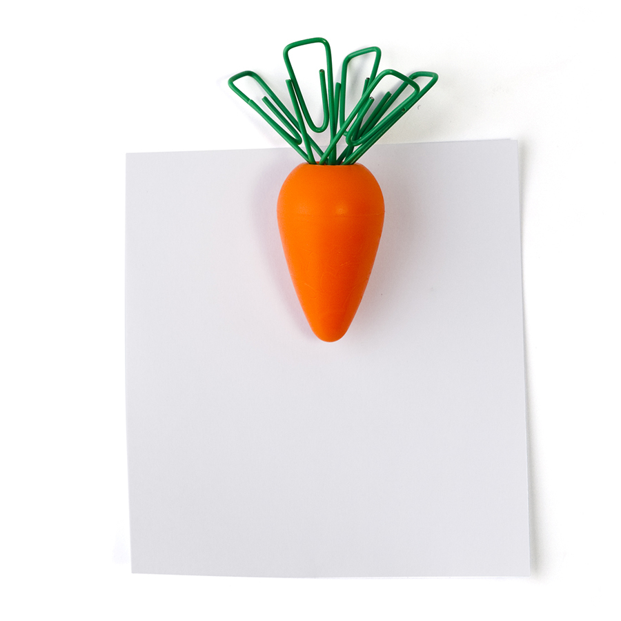 Зайчик 2 в 1! Это и острые ножницы - ушки и хорошенький диспенсер для скрепок в виде магнитной морковки. После того как закончатся, входящие в комплект скрепки, Вы можете использовать любые другие, желательно зеленого цвета:)