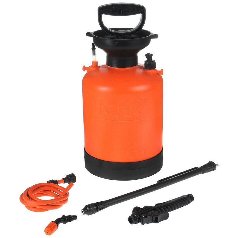 Мерная шкала на баке показывает остаток содержимого. Предохранительный клапан срабатывает при избыточном давлении, что обеспечивает безопасность в процессе эксплуатации опрыскивателя. Телескопический брандспойт позволяет заботится о растениях разной высоты. Регулировка струи на брандспойте даёт возможность использовать опрыскиватель как для защиты растений от вредителей, так и для полива. Наплечный ремень поставляется в комплекте.