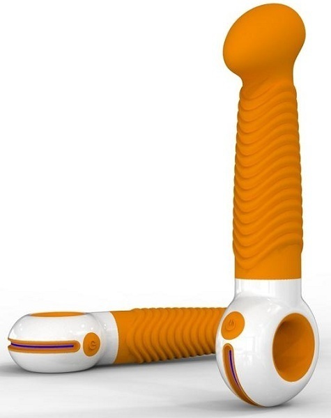 Оранжево-белый вибратор O-zone с ребристой поверхностью