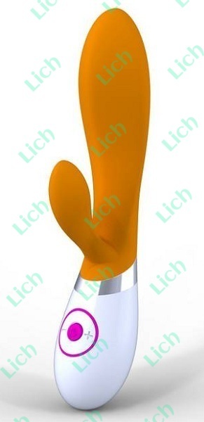 Оранжевый вибратор Rabbit с клиторальным стимулятором