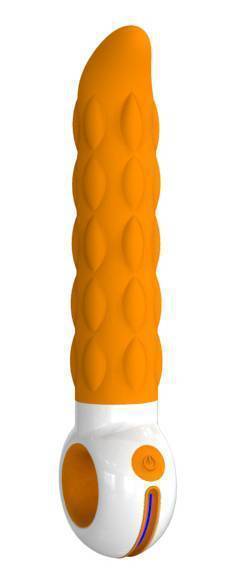 Ох, что за чудо эти продолговатые шишечки на стволе вибратора! Если, касаясь их пальцами, уже испытываешь удовольствие, нетрудно догадаться, как сладко будет при введении игрушки в лоно. Волнующий рельеф и мощная мультискоростная вибрация – это ещё не всё, чем может гордиться этот оранжевый вибромассажёр. Главная изюминка – загнутый кончик, который подарит вам самый сладкий массаж точки G. Длина 13 см, диаметр 2,5 см.