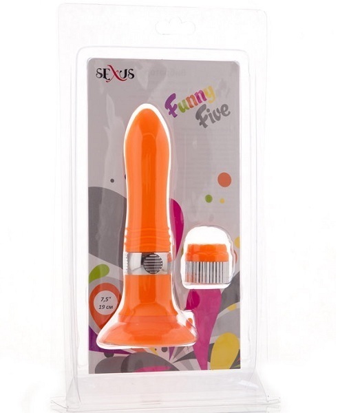Оранжевый водонепроницаемый вибратор на присоске со сменной панелью управления 19 см.