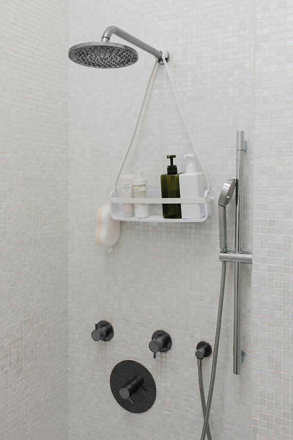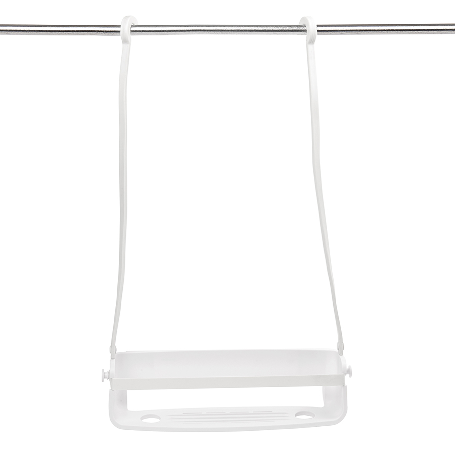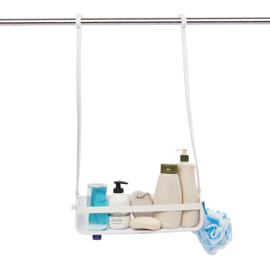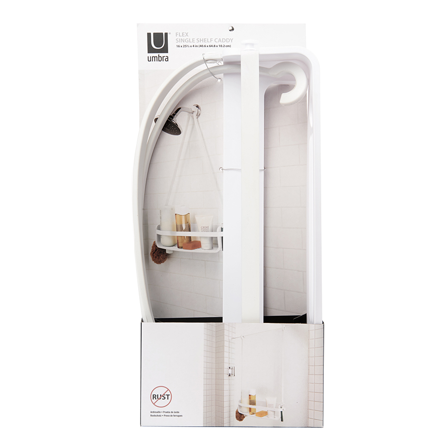 Уменьшенный вариант органайзера для душа FLEX. Этот органайзер состоит из одной полочки и 2 крючков по бокам. Может использоваться отдельно или в комплекте со стандарным FLEX'ом. Благодаря креплениям может устанавливаться на стойку для душа или дверь душевой кабины. Не подвержен ржавчине! Благодаря эластичным перемычкам удержит даже самые большие бутылки с гелями и шампунями. Отверстия в полочках не дадут воде застаиваться. Дизайнер Umbra Studio