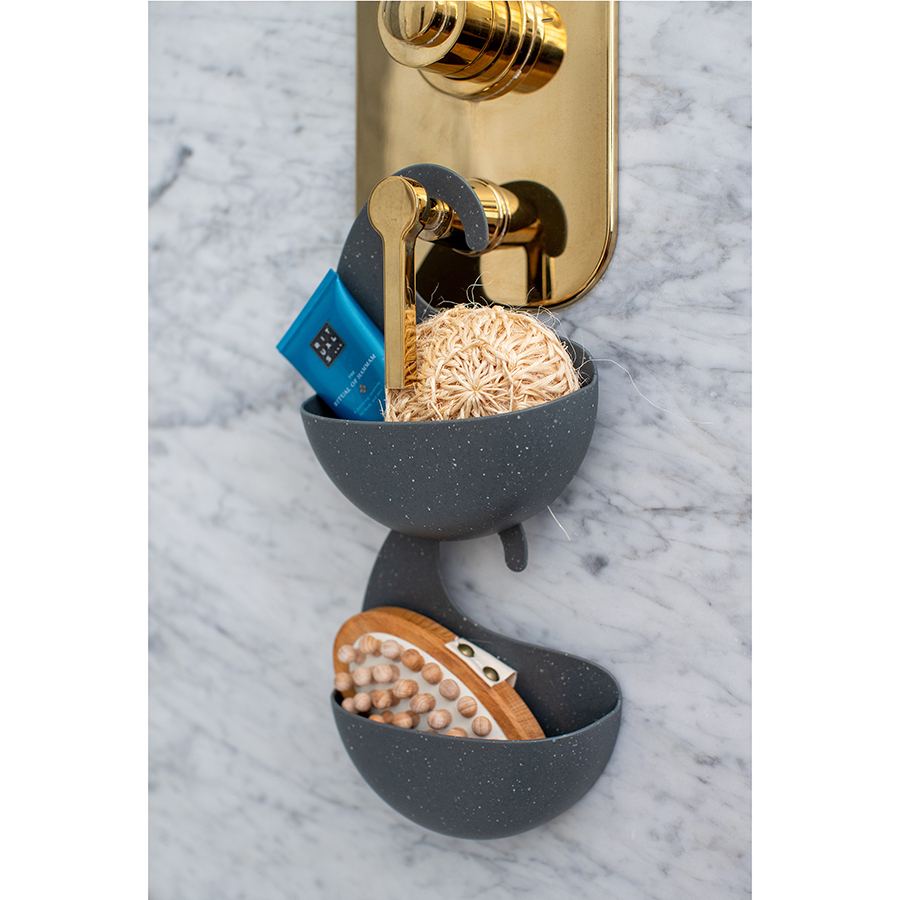 Изделие с крючком можно повесить на стойку душа или кран. Прорези на дне не дают воде застаиваться и позволяют цеплять органайзеры друг за друга. Изделие выполнено из переработанного полипропилена.
