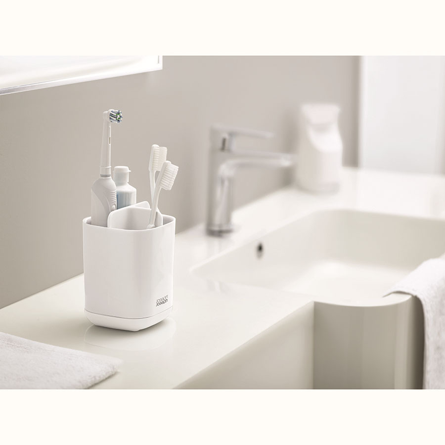Эргономичный органайзер идеально подходит для хранения обычных и электрических зубных щеток, а также тюбиков пасты.