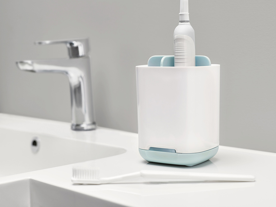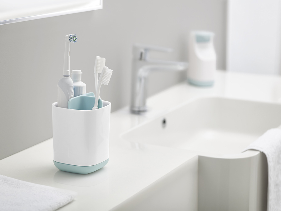 Эргономичный органайзер идеально подходит для хранения обычных и электрических зубных щеток, а также тюбиков пасты.