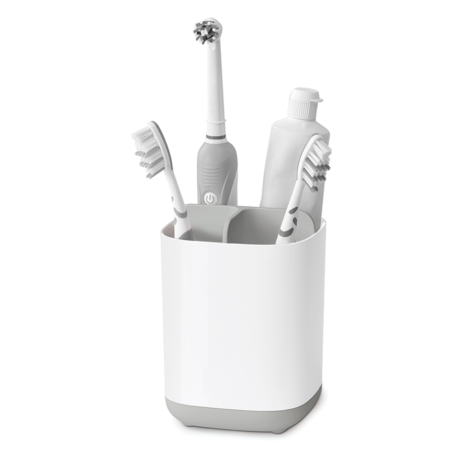 Эргономичный органайзер идеально подходит для хранения обычных и электрических зубных щеток, а также тюбиков пасты.