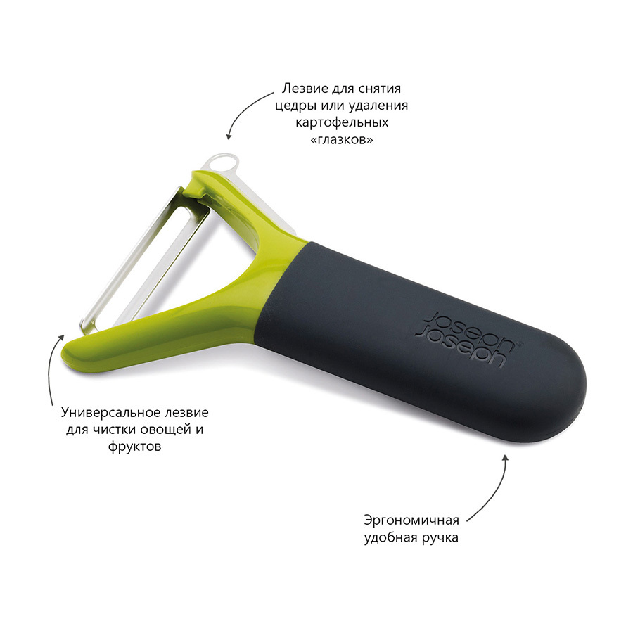 Дополнительное лезвие-скребок подходит для снятия цедры или для удаления картофельных «глазков». Двойное лезвие из нержавеющей стали (плавающее для чистки и жесткое - для скобления) эффективно очищает фрукты и овощи любой твердости. Эргономичная рукоятка обеспечивает удобство использования. Защитный чехол для лезвия идет в комплекте.
