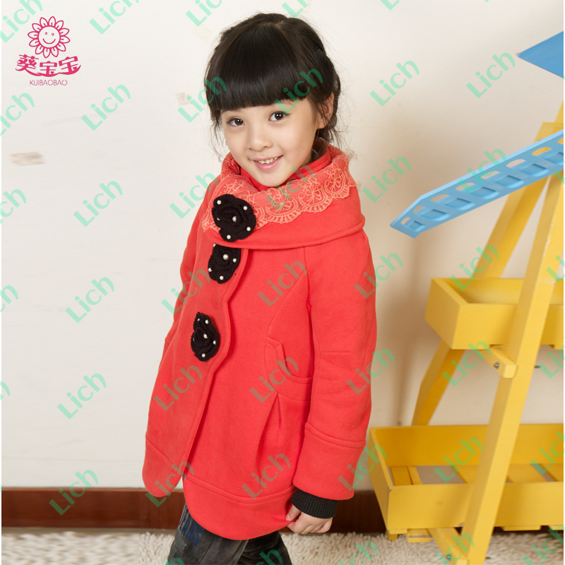 Пальто детское с крупными цветами и кружевом на воротнике