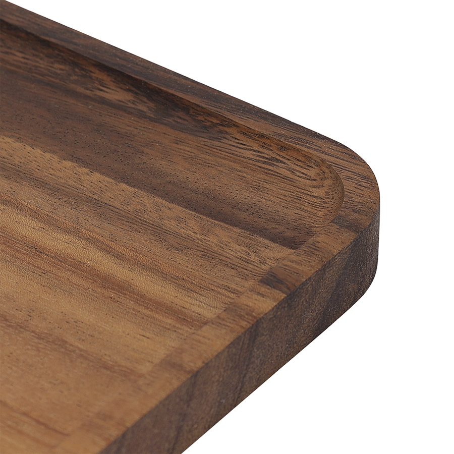 Поднос Bernt – настоящее украшение любой сервировки и стильный акцент интерьера. Изделие из натуральной древесины ореха отличается презентабельным внешним видом, экологичностью, высокой прочностью и устойчивостью к износу. Края подноса немного возвышаются над основанием, образуя специальные бортики, которые надежно фиксируют продукты внутри и делают дизайн более привлекательным. Аксессуар прекрасно вписывается в различные стилевые решения кухни и столовой.
