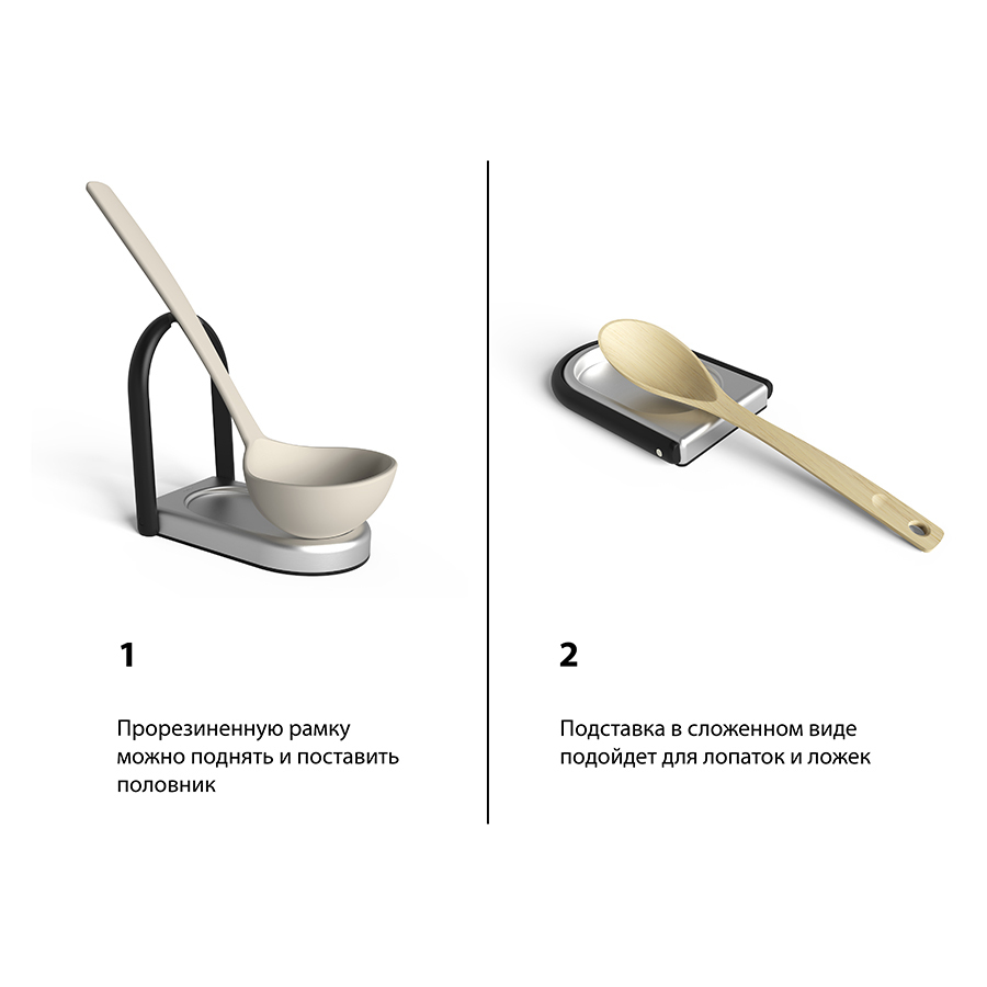 Небольшой, но незаменимый помощник на кухне - подставка для ложки. Позволяет сохранять чистоту столешницы во время приготовления. В металлическом основании предусмотрено углубление, а на поддерживающей ручке - накладка из резины, чтобы ложка или половник не соскальзывали. Подставка складывается для компактного хранения. Сочетается с другими аксессуарами для кухни из коллекции Udock: подставкой для кулинарной книги и салфетницой. Дизайнер David Green